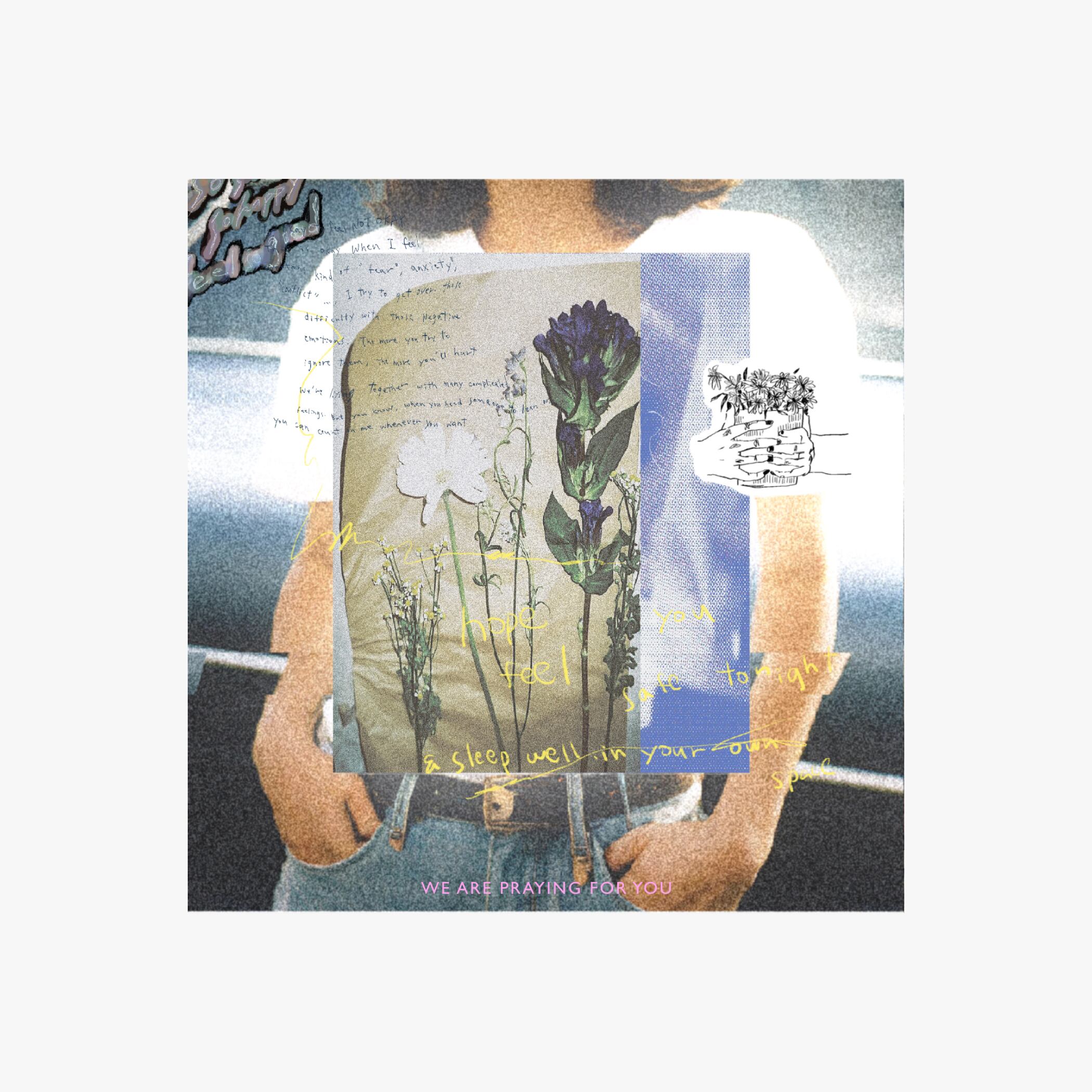 少しでもSafe(安心、安全)な気持ちでいられますように、という想いを込め“Hope you can sleep well tonight “の手書きメッセージやブーケをモチーフに描きました。